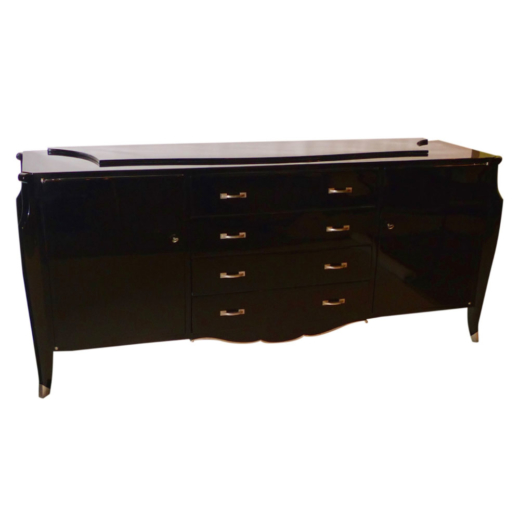 COUNTRY France YEAR c. 1930/40's DESCRIPTION Antique Art Deco sideboard in black lacquer with four drawers in centre and two side...