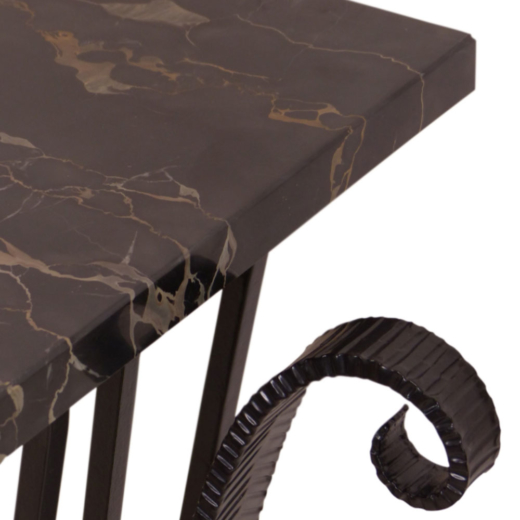 COUNTRY France YEAR c. 1920/30's DESCRIPTION Pair of antique French Art Deco consoles with black wrought iron base and porter marble...