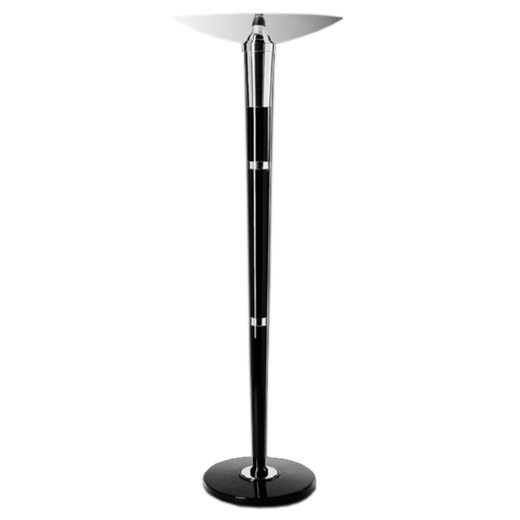ANNE HAUCK COLLECTION DESCRIPTION As shown: Black Lacquer Stem and Base Polished Nickel Shade and Details Glass Inserts on Shade Custom Finishes Available Dimensions 71.5"H x 24.5"Dia