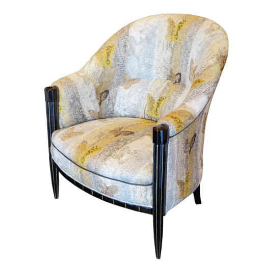 COUNTRY France YEAR c. 1920's-30's DESCRIPTION Salon chair in black lacquer with silver leaf detailing along...