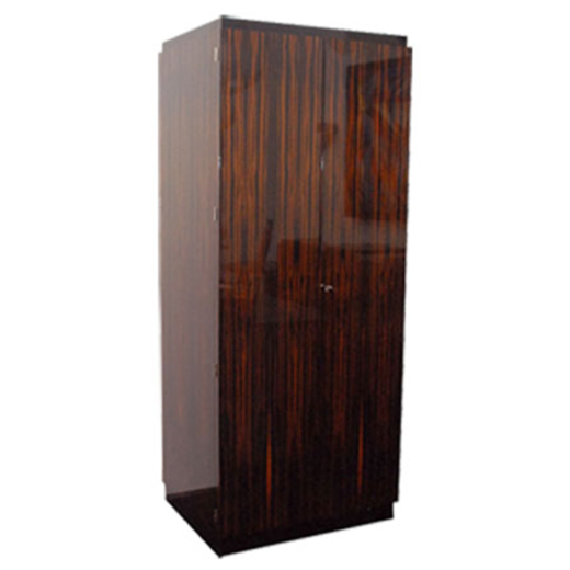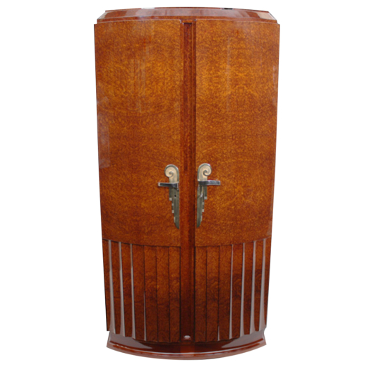 ANNE HAUCK COLLECTION DESCRIPTION As shown: Amboyna Burl Doors and Sides Fluted Lower Body Mahogany Base and Top Platform Custom Hardware Custom sizes, woods and finishes available Dimensions 84"H x 40"W x 22"D
