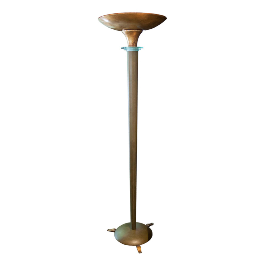 COUNTRY France YEAR c. 1930's DESCRIPTION Single Art Deco torchiere in green with gold leaf...