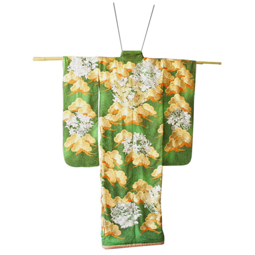100% Silk Detailed Embroidery of Cranes and Clouds on Green Background