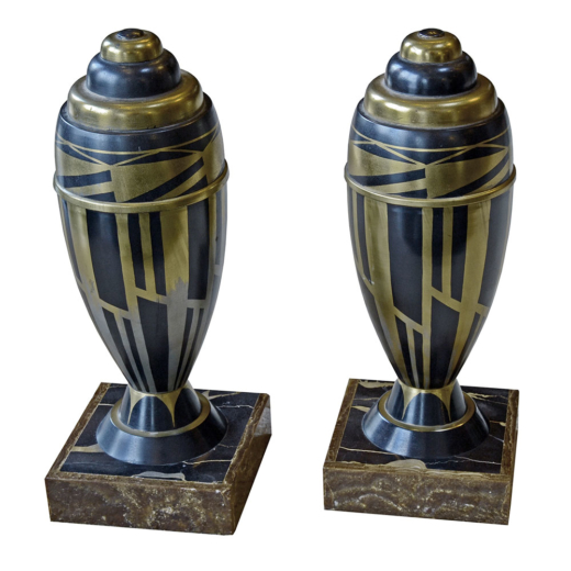 Pair of decorative urns Marble and Bronze Painted Gold Art Deco Motif